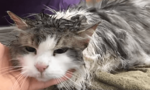 A cat was found buried in the snow and left for dead by its owners. When rescuers found the cat, it had snowballs stuck to its fur and was in really bad shape. The fur was matted with ice and the cat’s body temperatures was dangerously low.